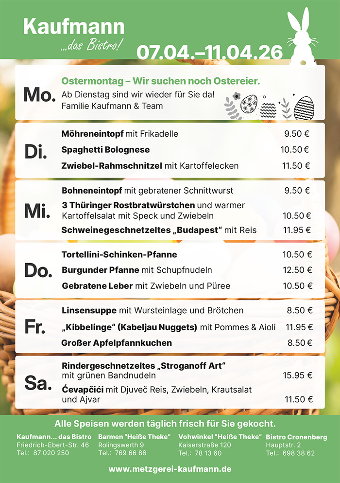 „Genießen Sie unsere Wochenangebote – frisch, regional und immer ein Genuss.“